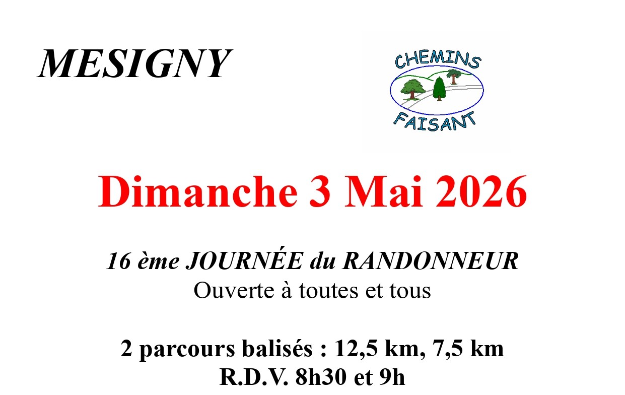 Assemblée Générale en septembre, Rand’Orientation en avril, Repas de fin d’année, Journée du Randonneur en mai