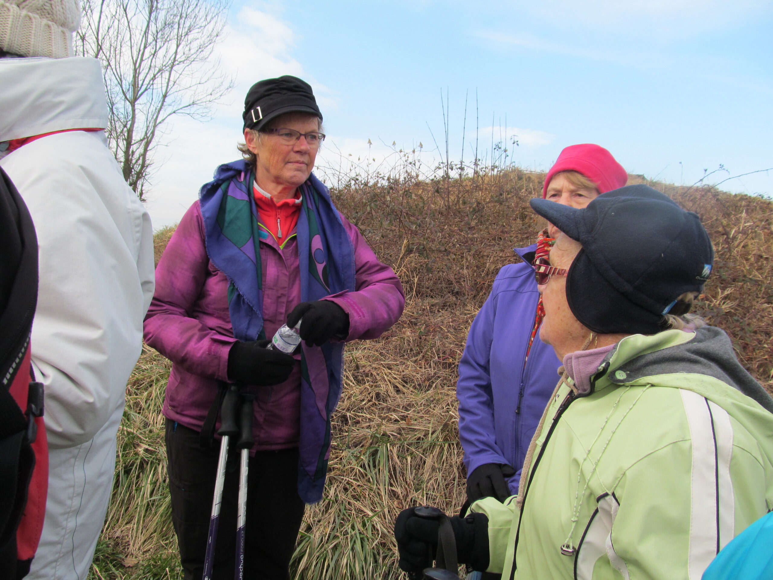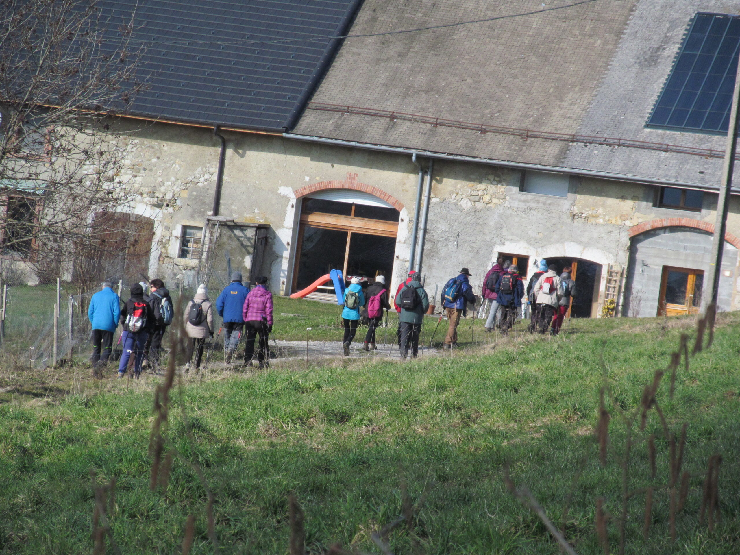 Itinéraire : mairie de Choisy et son jardin, descente vers Perroux, Avrenay, montée jusqu’à Combes, descente vers le stade, bordure du parcours santé, banc de la Bellevue, chemin des écoliers pour retour au chef-lieu. La majeure partie du chemin s’est fait à l’abri du vent grâce au choix judicieux de notre animatrice.