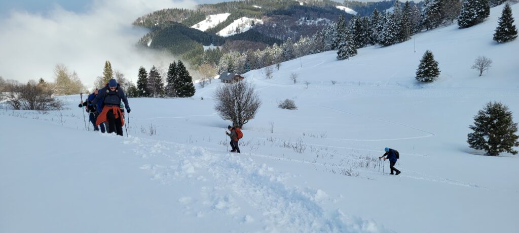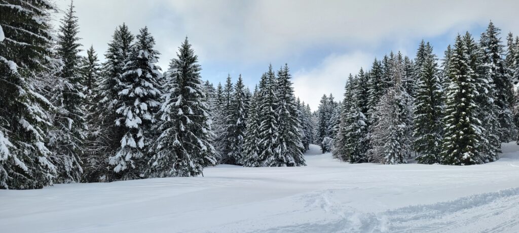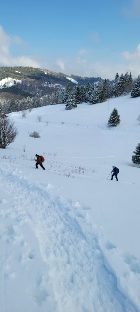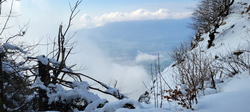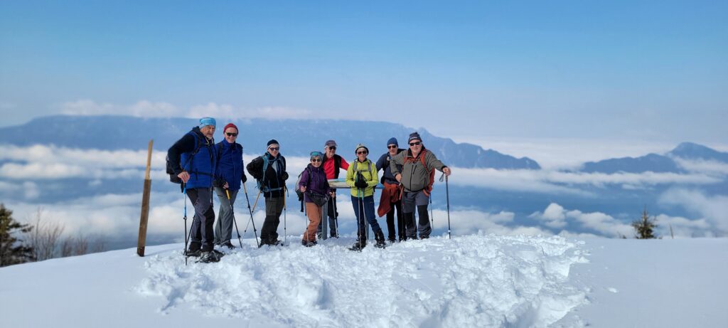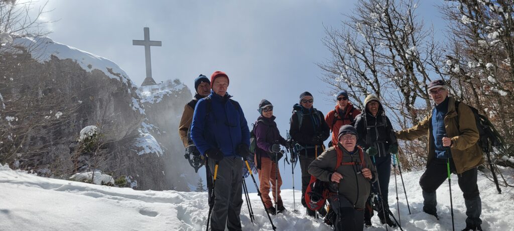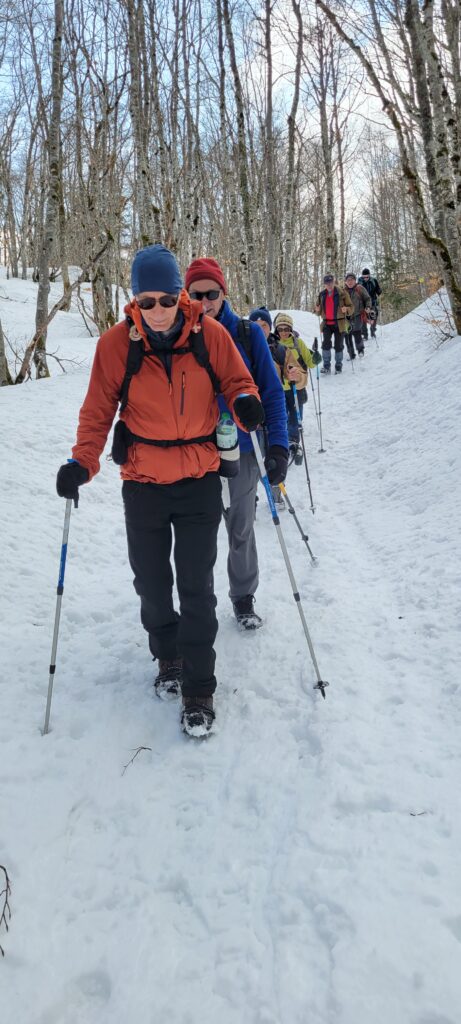 Un paysage hivernal nous attendait à la Féclaz où nous avons tous chaussés les raquettes compte tenu des chutes de neige de la veille.