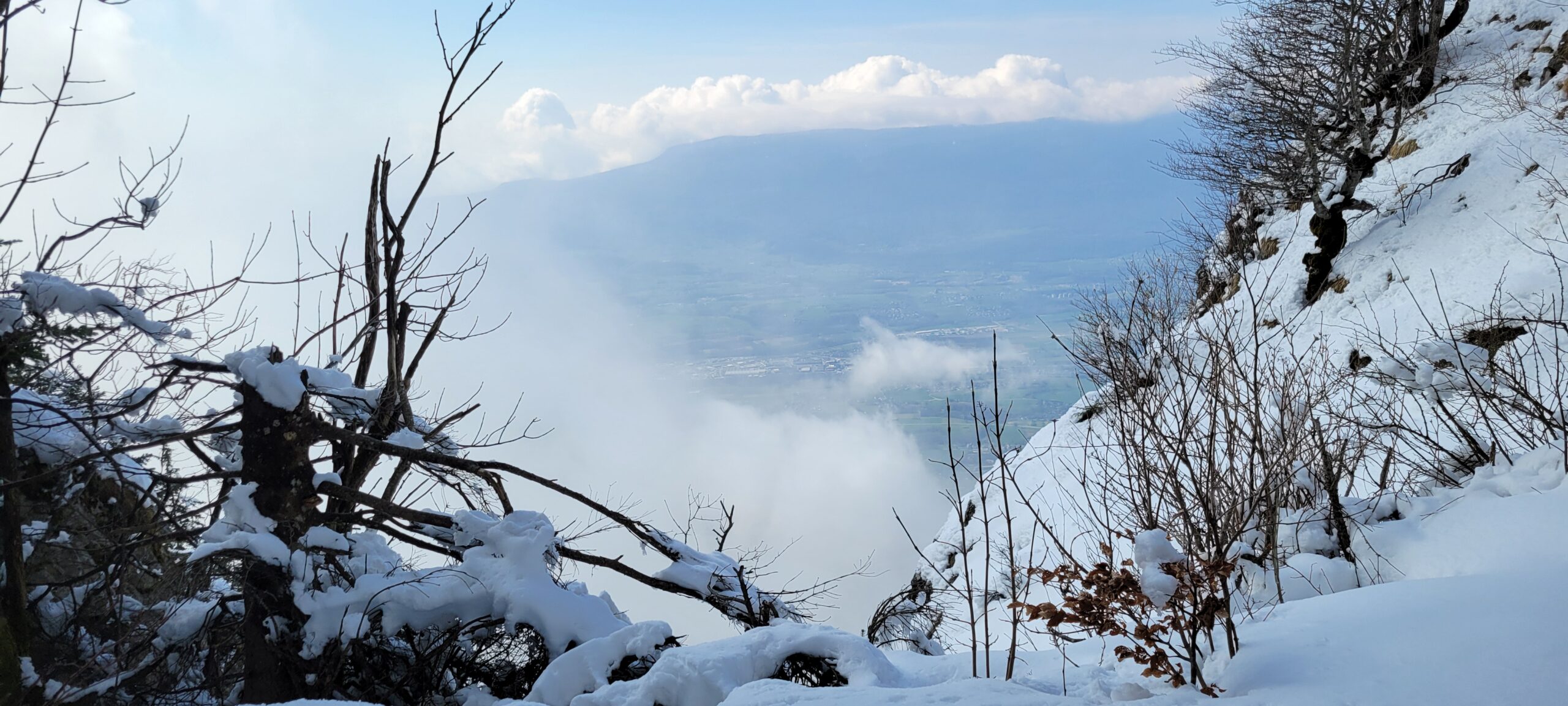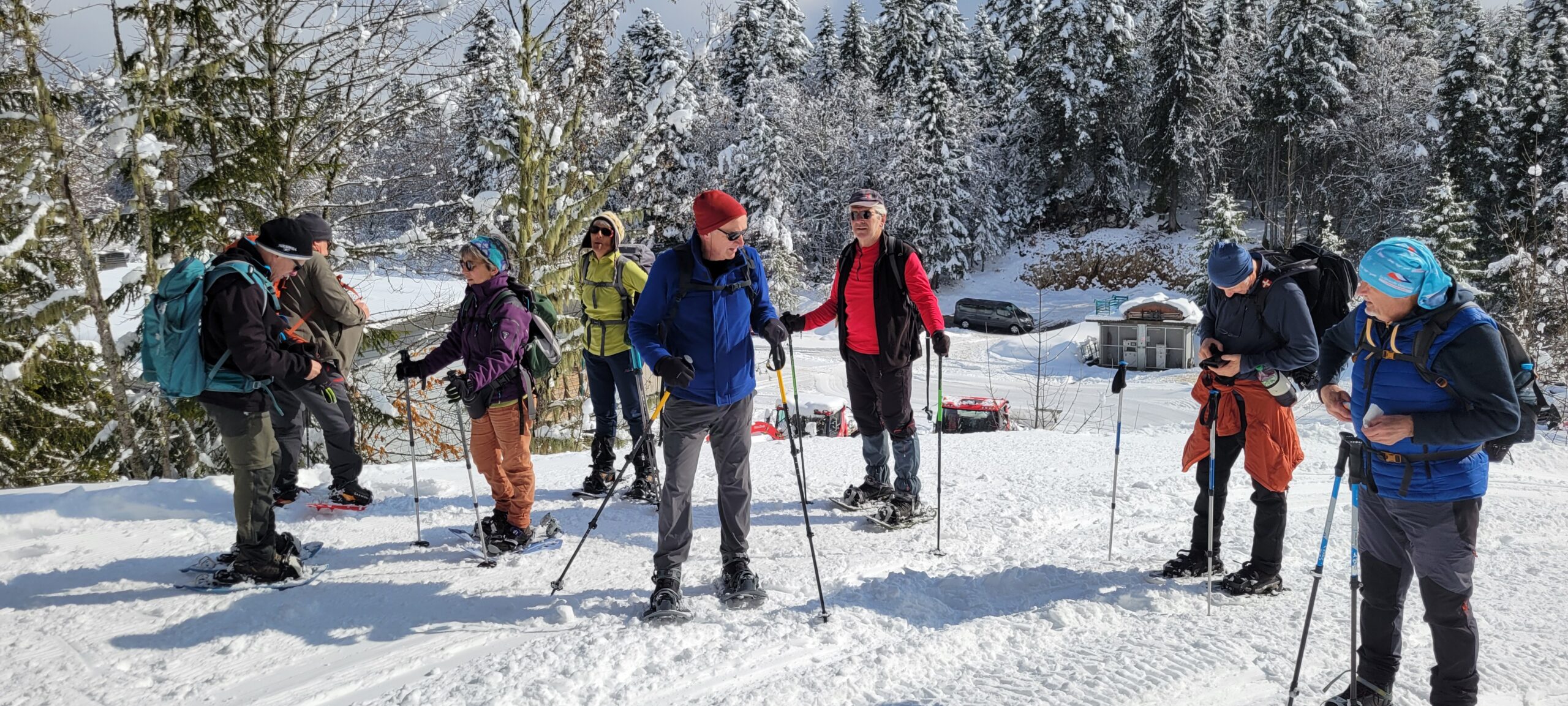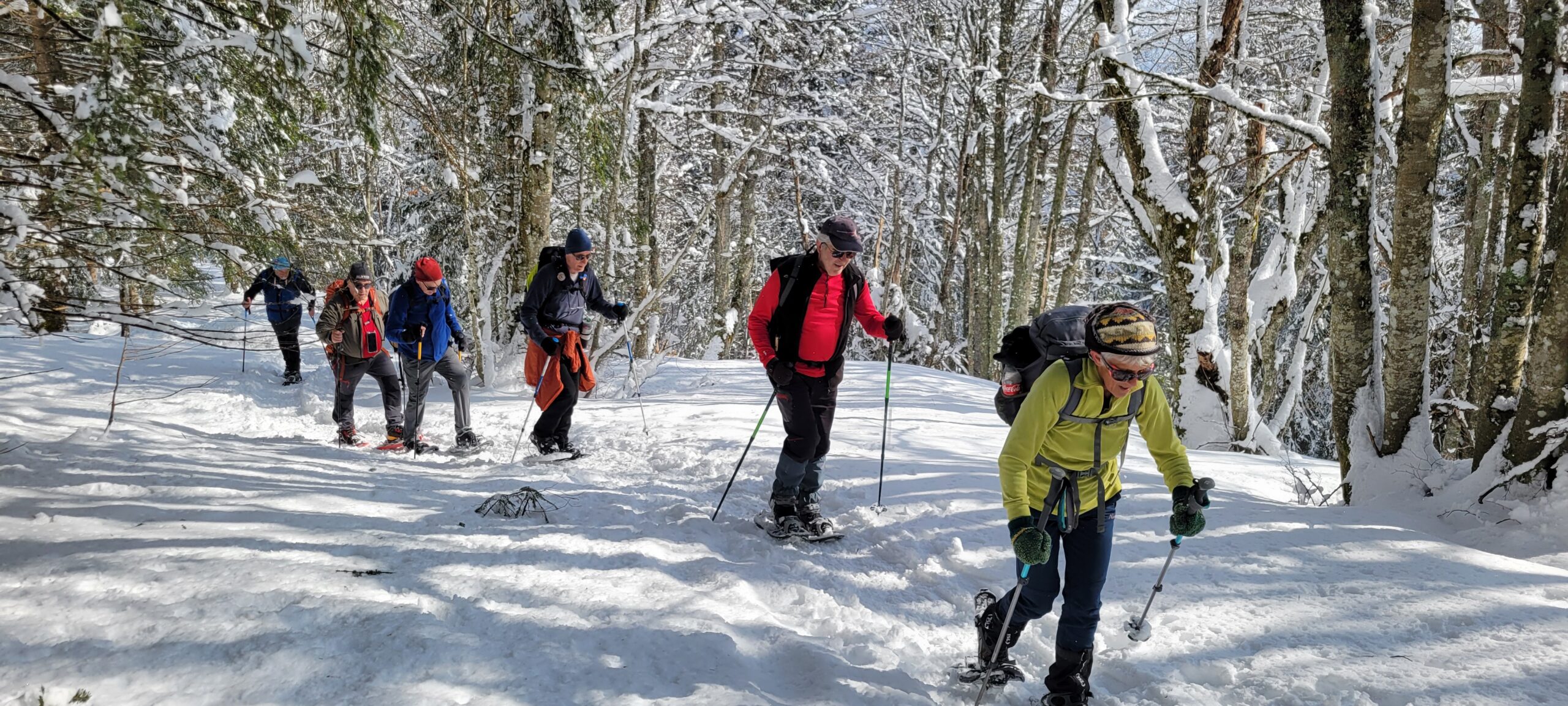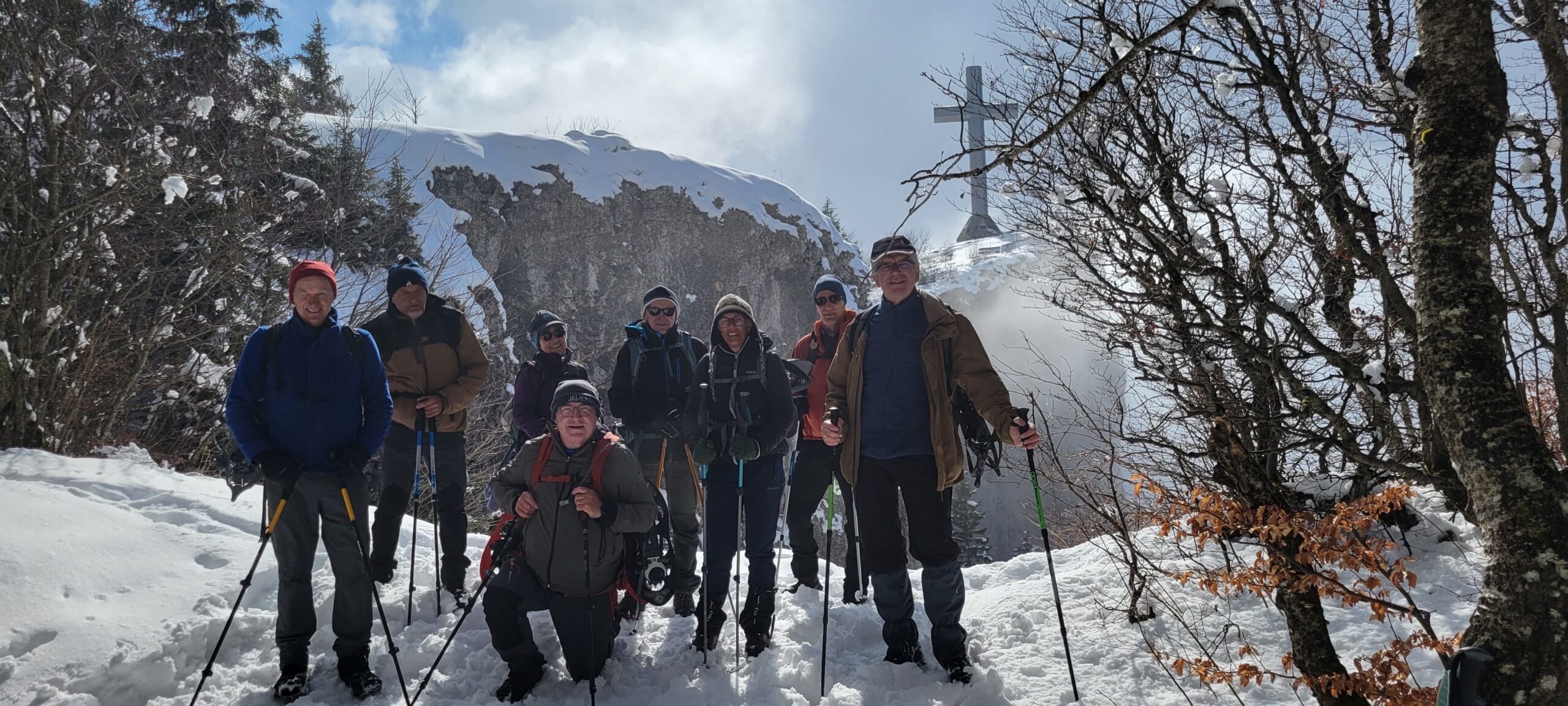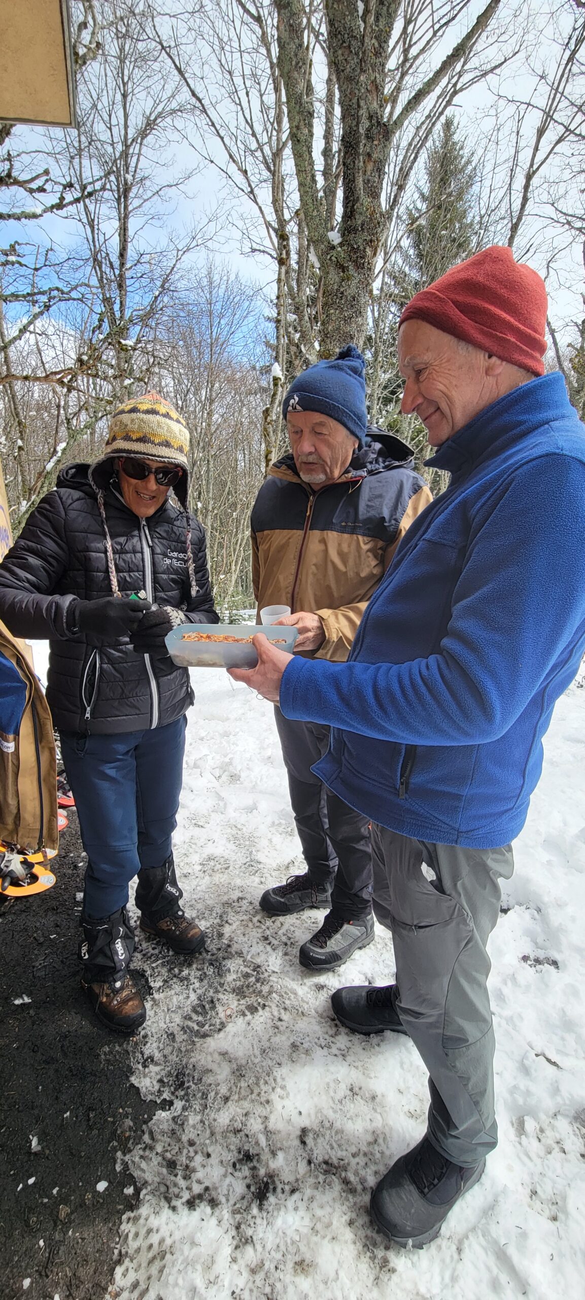 Un paysage hivernal nous attendait à la Féclaz où nous avons tous chaussés les raquettes compte tenu des chutes de neige de la veille.