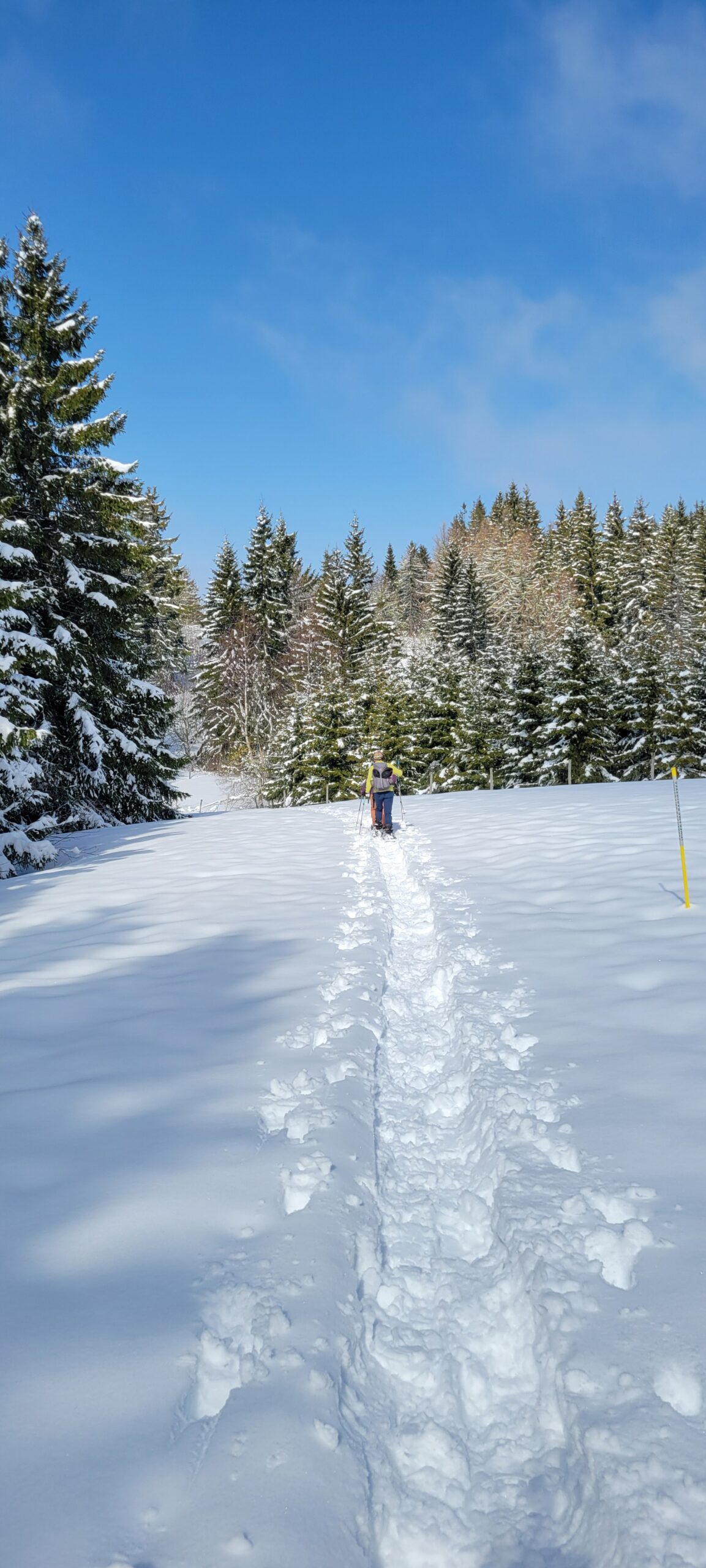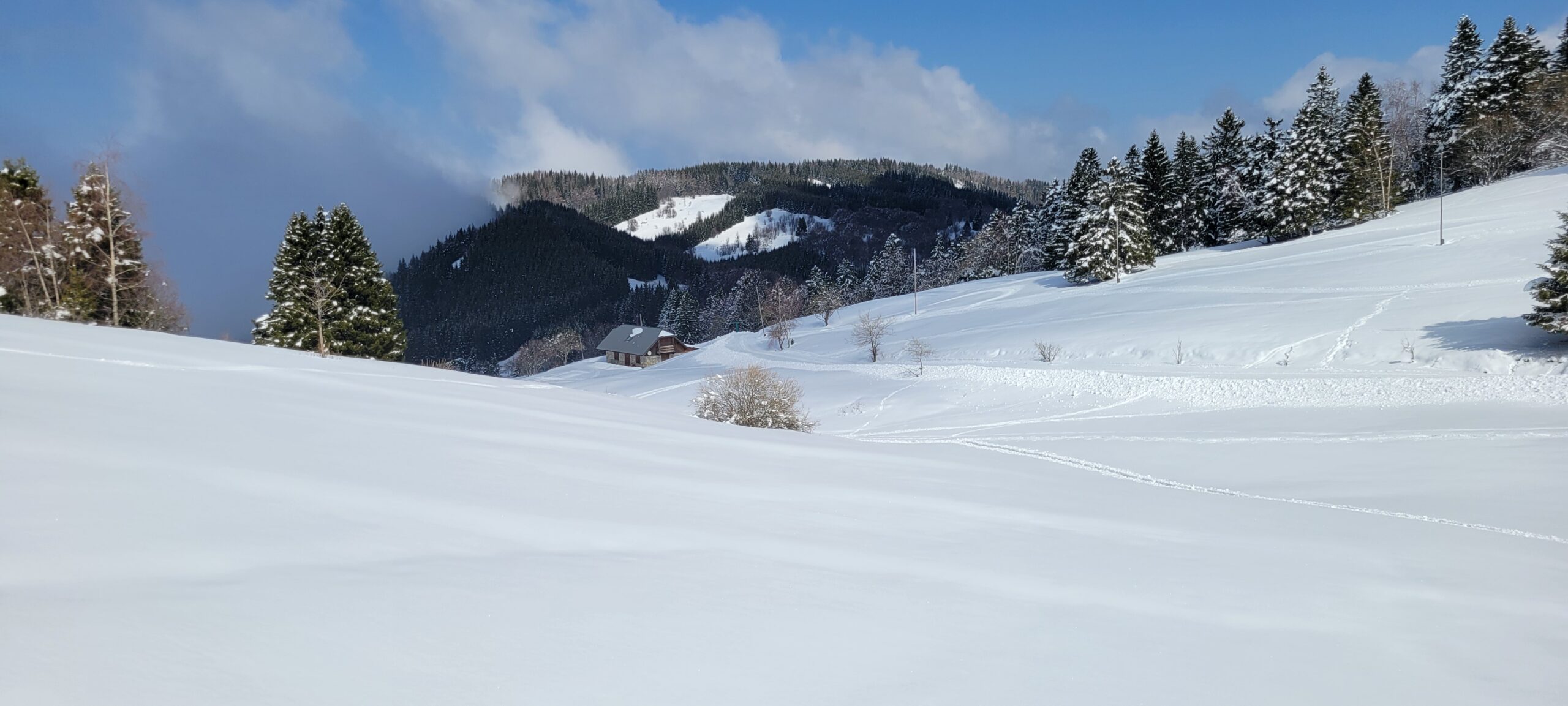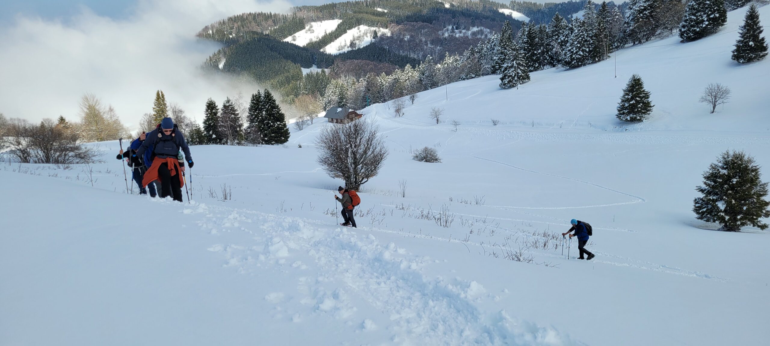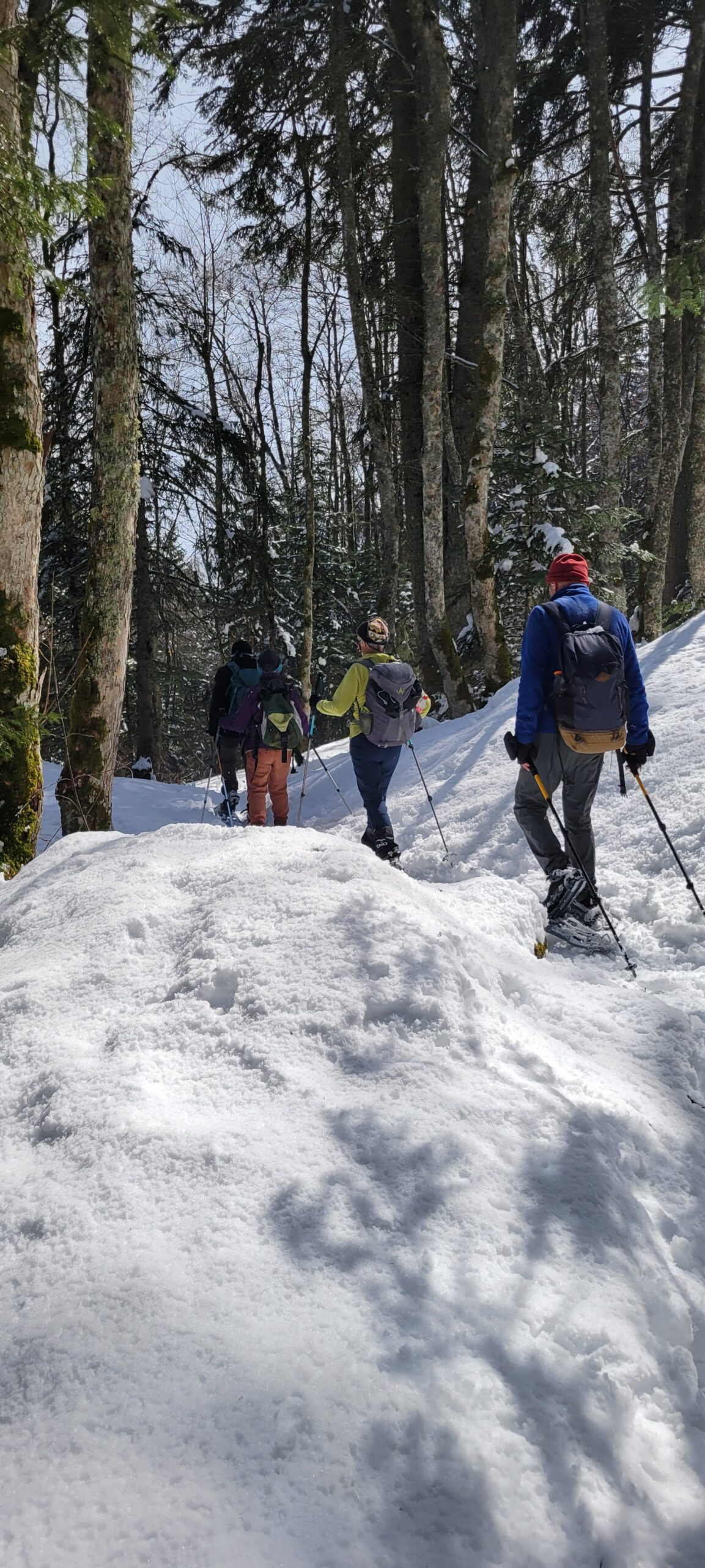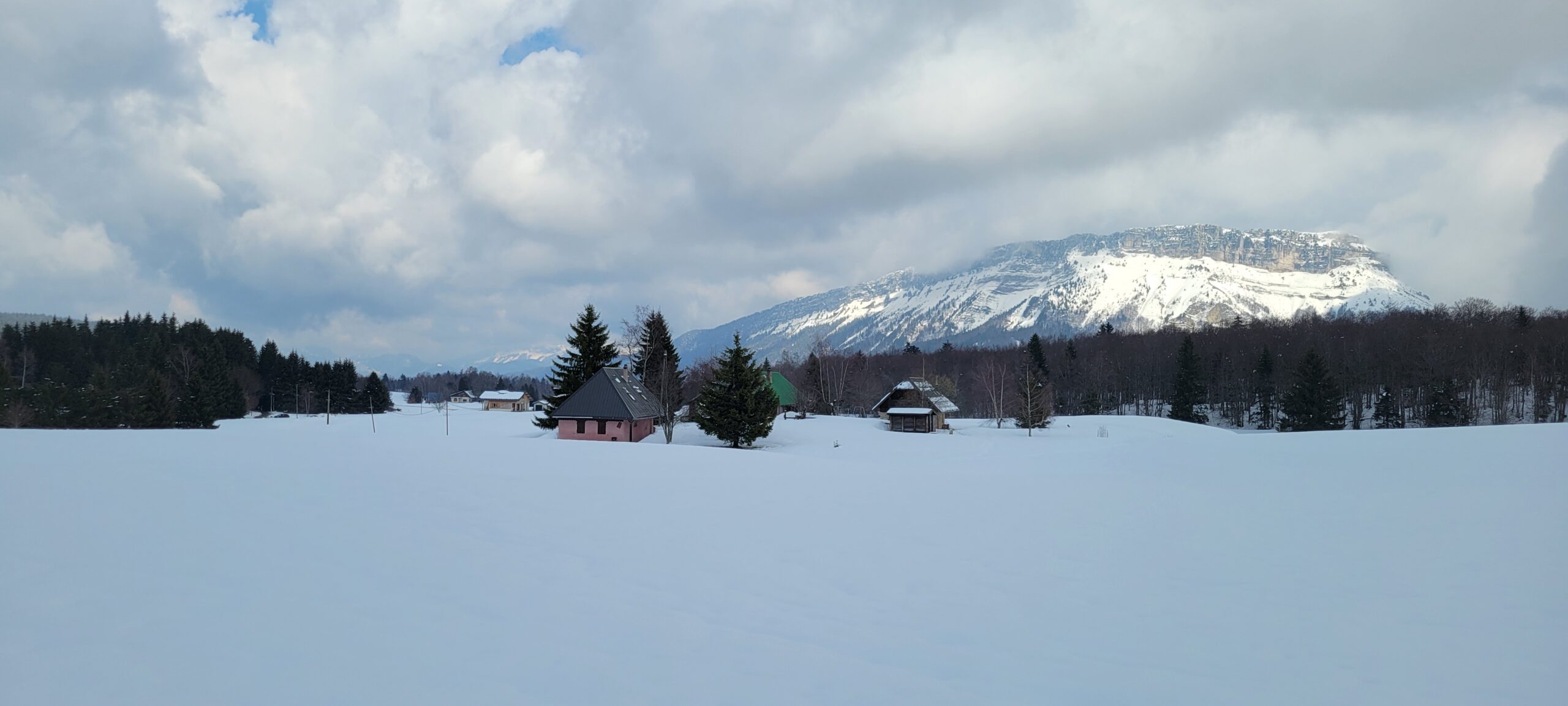 Un paysage hivernal nous attendait à la Féclaz où nous avons tous chaussés les raquettes compte tenu des chutes de neige de la veille.