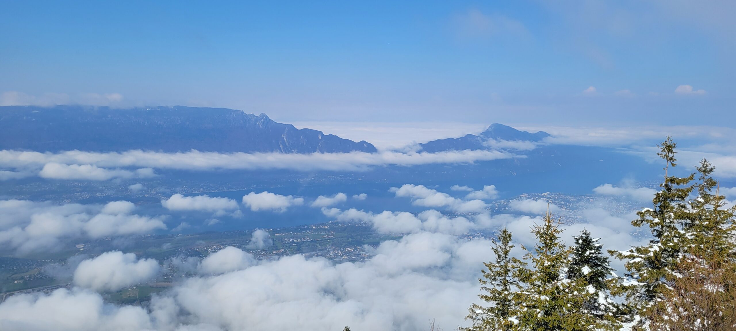 Montée soutenue jusqu’à l’Orionde,puis vers les chalets du Sire avant de poursuivre vers la Croix du Nivolet .Le soleil jouait à cache cache avec les nuages et nous a laissé  apercevoir le lac du Bourget.