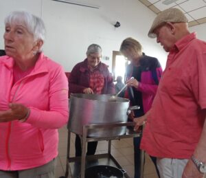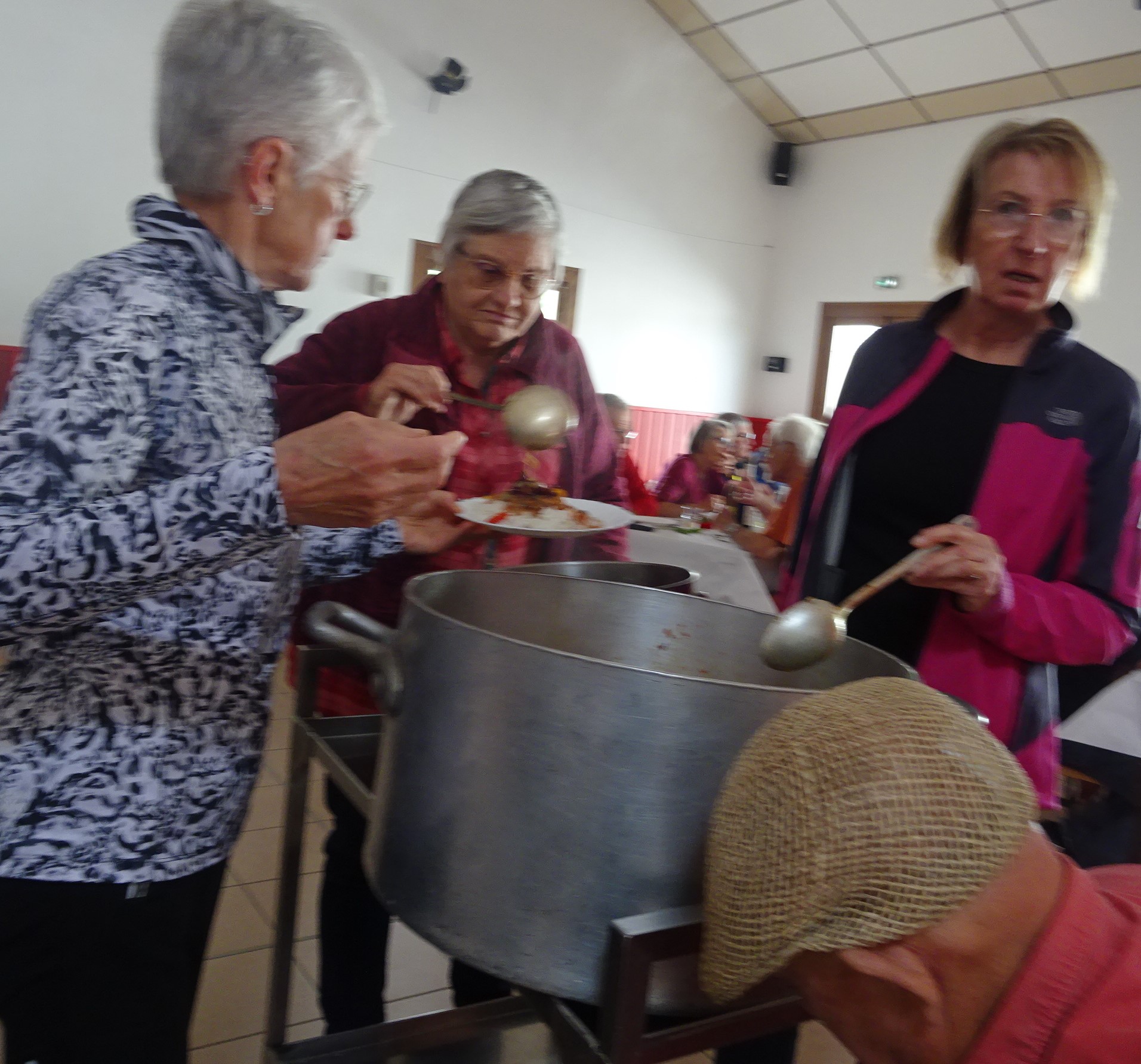 après une bonne marche, c’est le moment de passer à table  pour  déguster le  Rougaïl  du chef  Maxime ,et les généreuses parts de tartes  de Josiane  après l’apéro bien sûr.