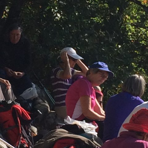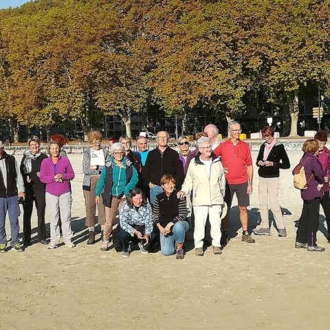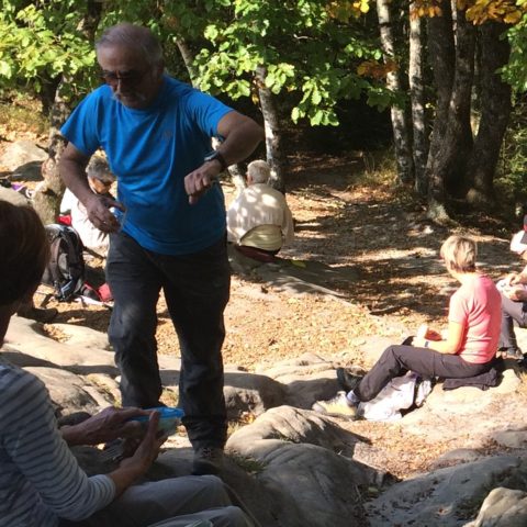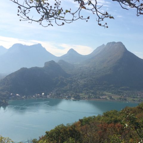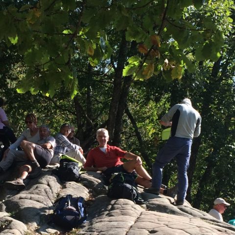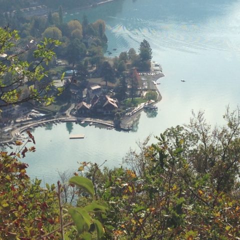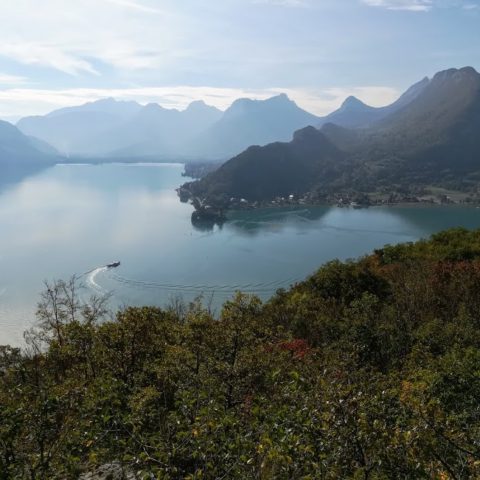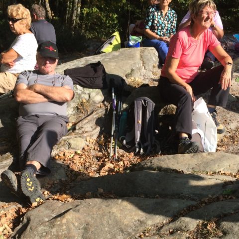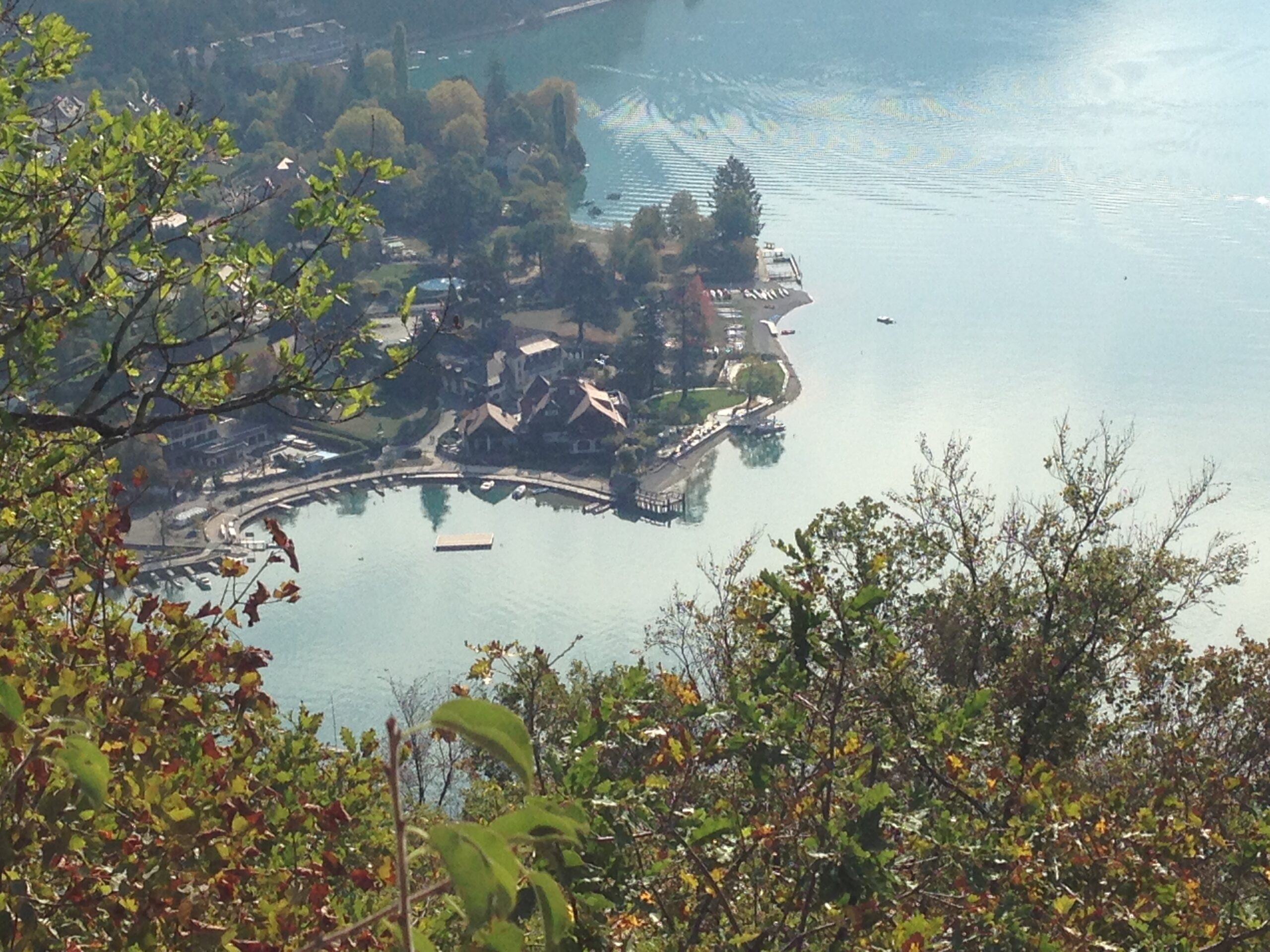 Une grande première, petit parcours de 5 km. Démarrage par un détour à Annecy, bord du lac, pour constater les effets de la sécheresse sur le volume du lac, Résultat spectaculaire. Puis direction le golf de Talloires notre point de départ. On fait une boucle, en montant sur le roc par un chemin caillouteux, jusqu’au belvédère, ravissement des yeux sur le paysage et pause pique nique. Retour par l’un des nombreux sentiers qui entoure le roc.