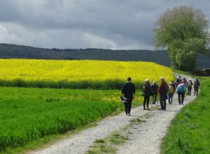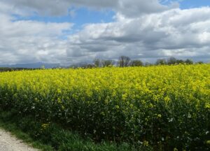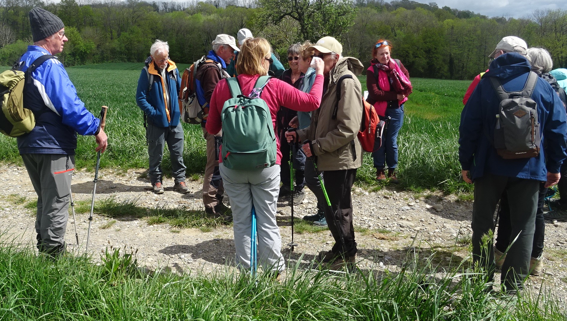 Ce jour là, nos animateurs nous ont éloignés de la Mandallaz .C’est le long du Vuache que nous avons cheminé entre rafales de vent ,averses et soleil. un très joli circuit  contournant un champ de colza. d’où on a pas pu apercevoir au lieu dit » le Mont » Genève et son jet d’eau